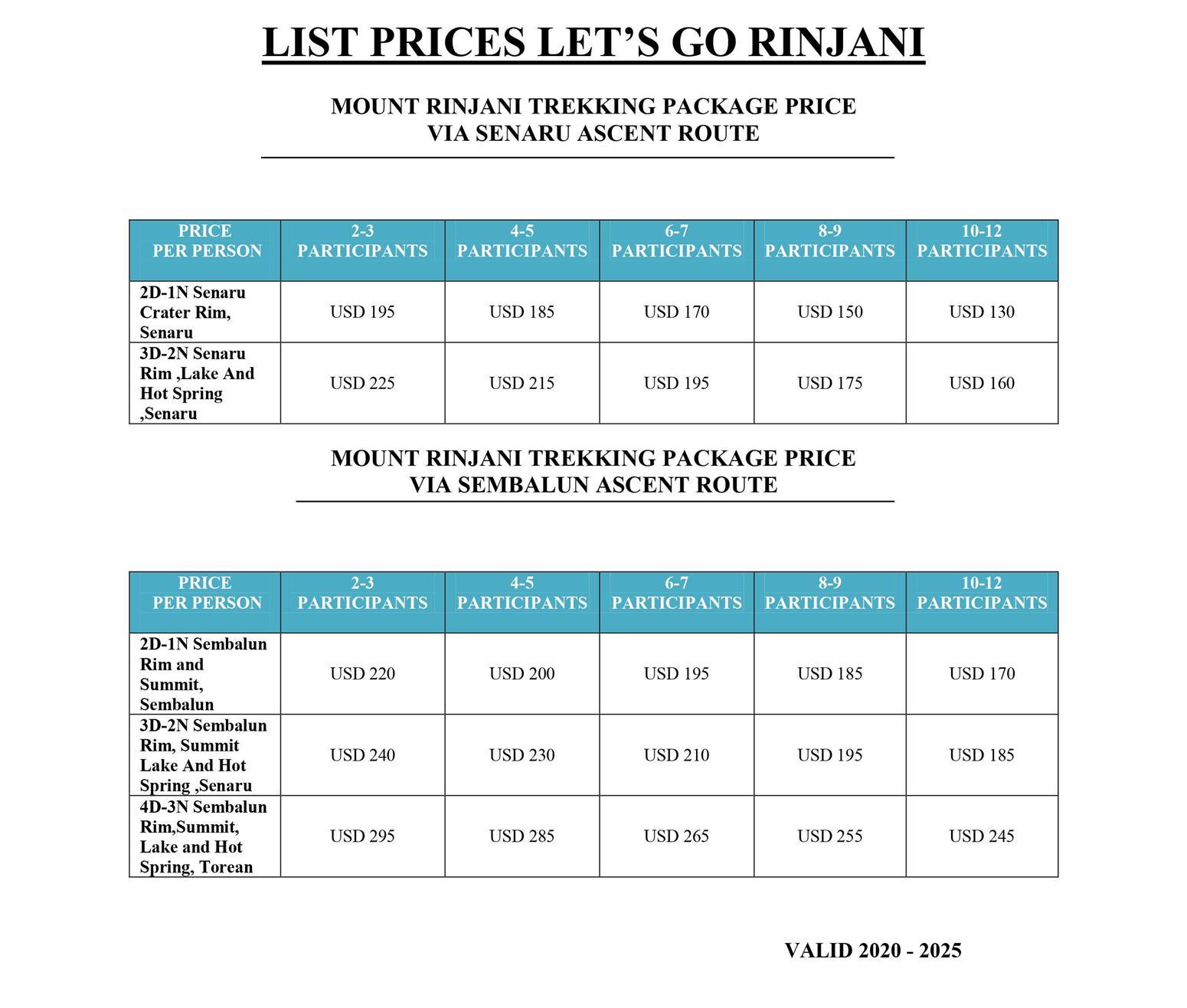 Rinjani Trekking Tour Package Price
